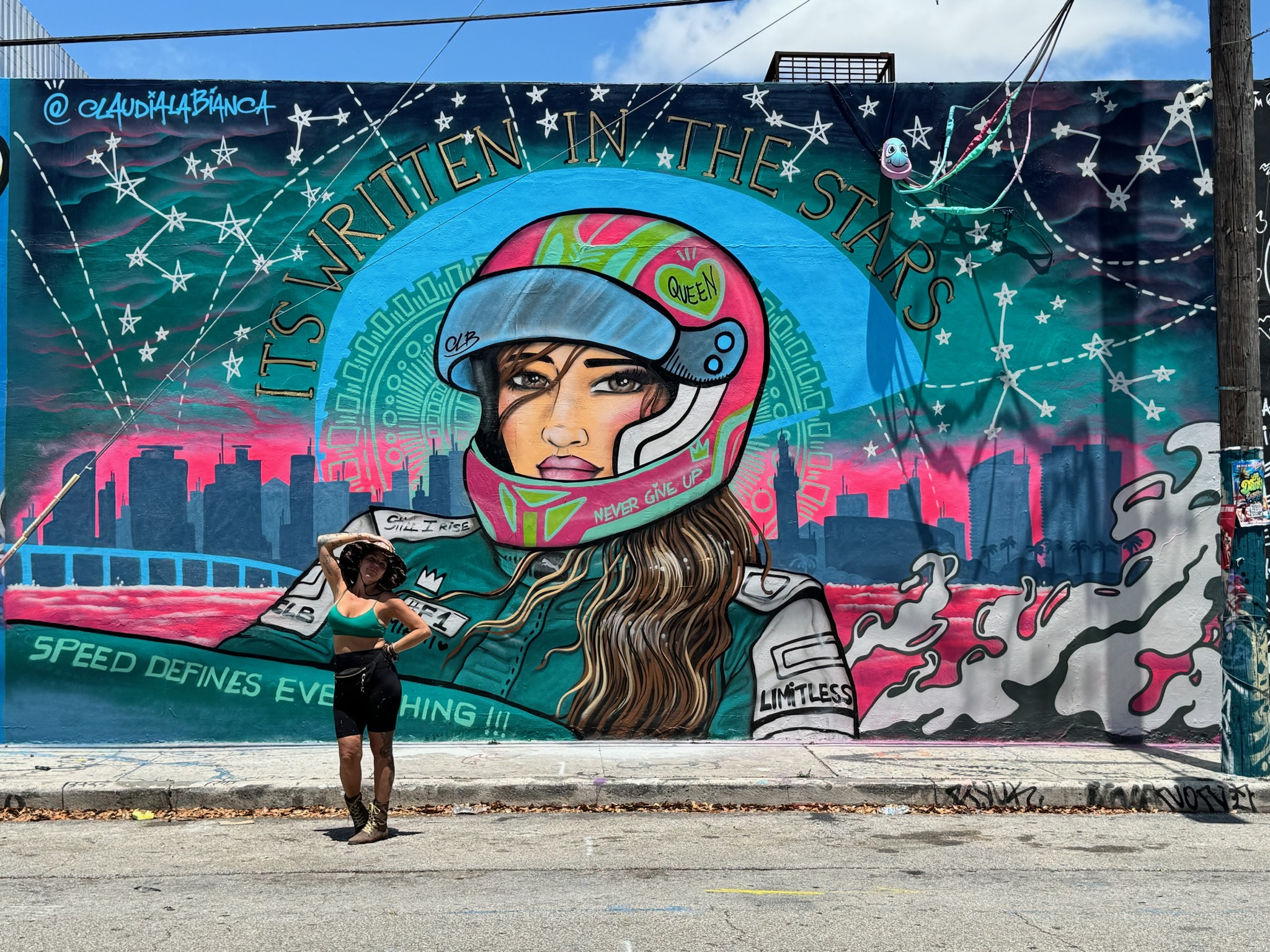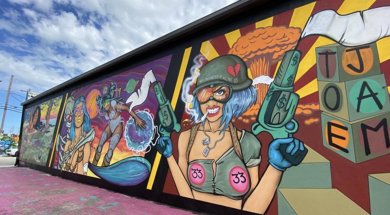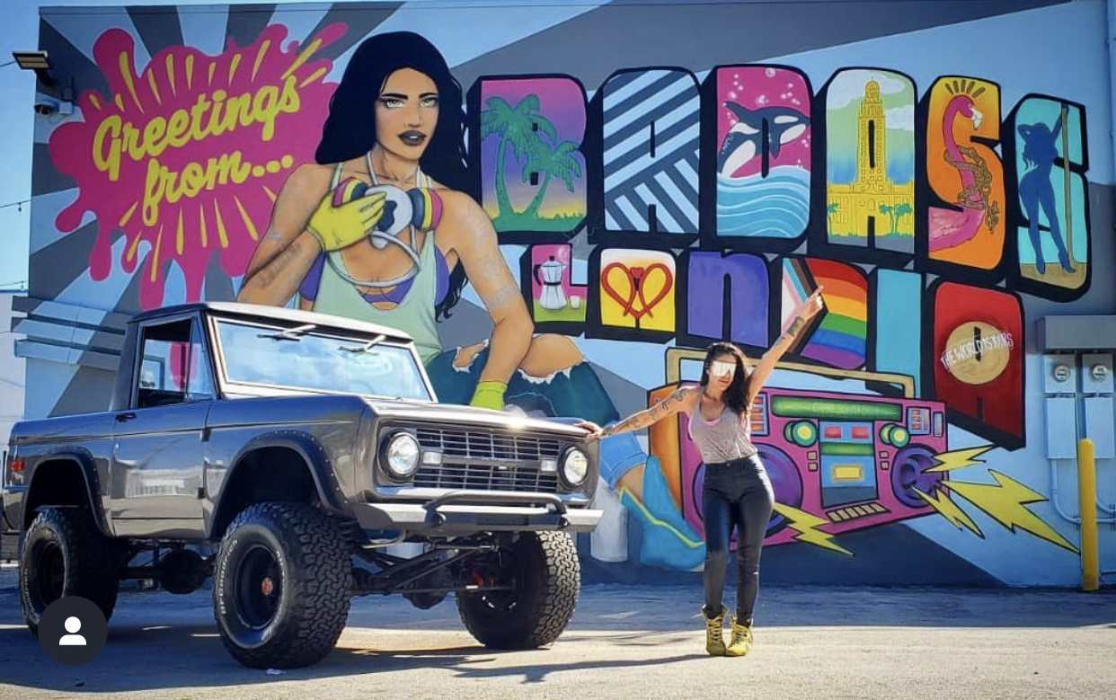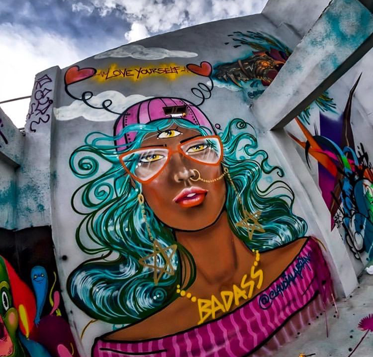 Being a Wynwood Miami resident since 2002 and a muralist since childhood, she quickly became one of most prolific street artists in the revolutionary art district. She has been credited with having the most murals throughout the Wynwood art district. Her art depicts strong and confident women who “step into their power”.