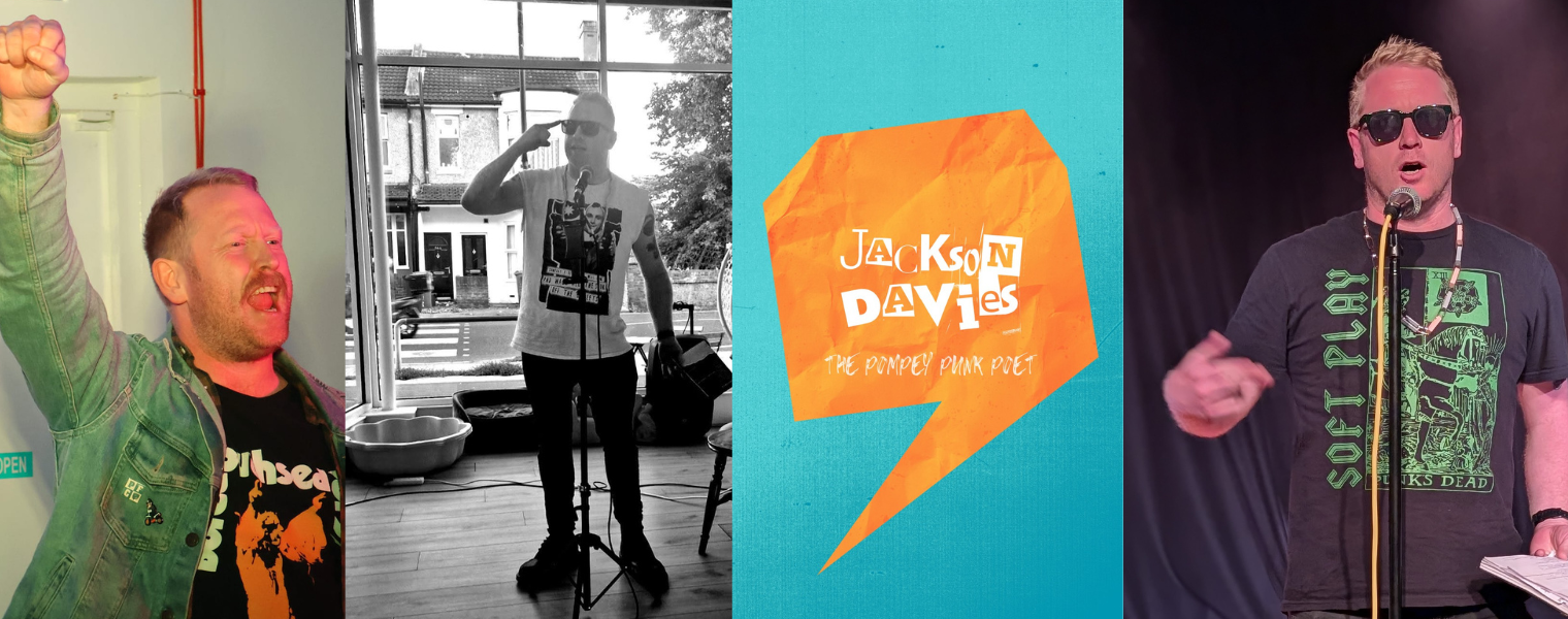 Jackson Davies is a Portsmouth‑based punk poet whose spoken word blends sharp humour, heartfelt honesty, and a streak of righteous fury. Described as a punk poet (with the cynical self‑awareness of a middle‑class dad of three) Jackson draws influence from punk, UK hip hop, and Celtic folk storytelling. The result is a performance style that’s raw, honest, funny, and unmistakably his own.