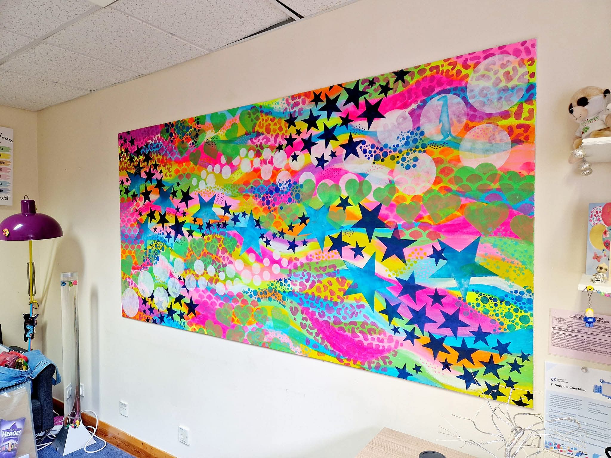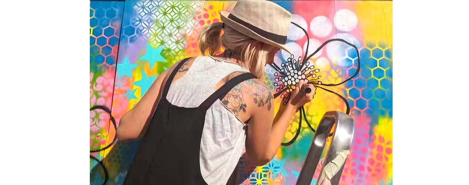I’m a passionate lover of colour and pattern with over 20 years of secondary school teaching experience. I love to support people of all ages to embrace their creativity, offering a safe and encouraging space to explore art. Through community workshops, I aspire to nurture wellbeing, inspire self-expression, and invite everyone to experience the joy and confidence that comes from creating without pressure. Whether it’s through painting, using mixed media, spray painting or collaborative projects, my focus is on making art accessible, uplifting, and fun for everyone.