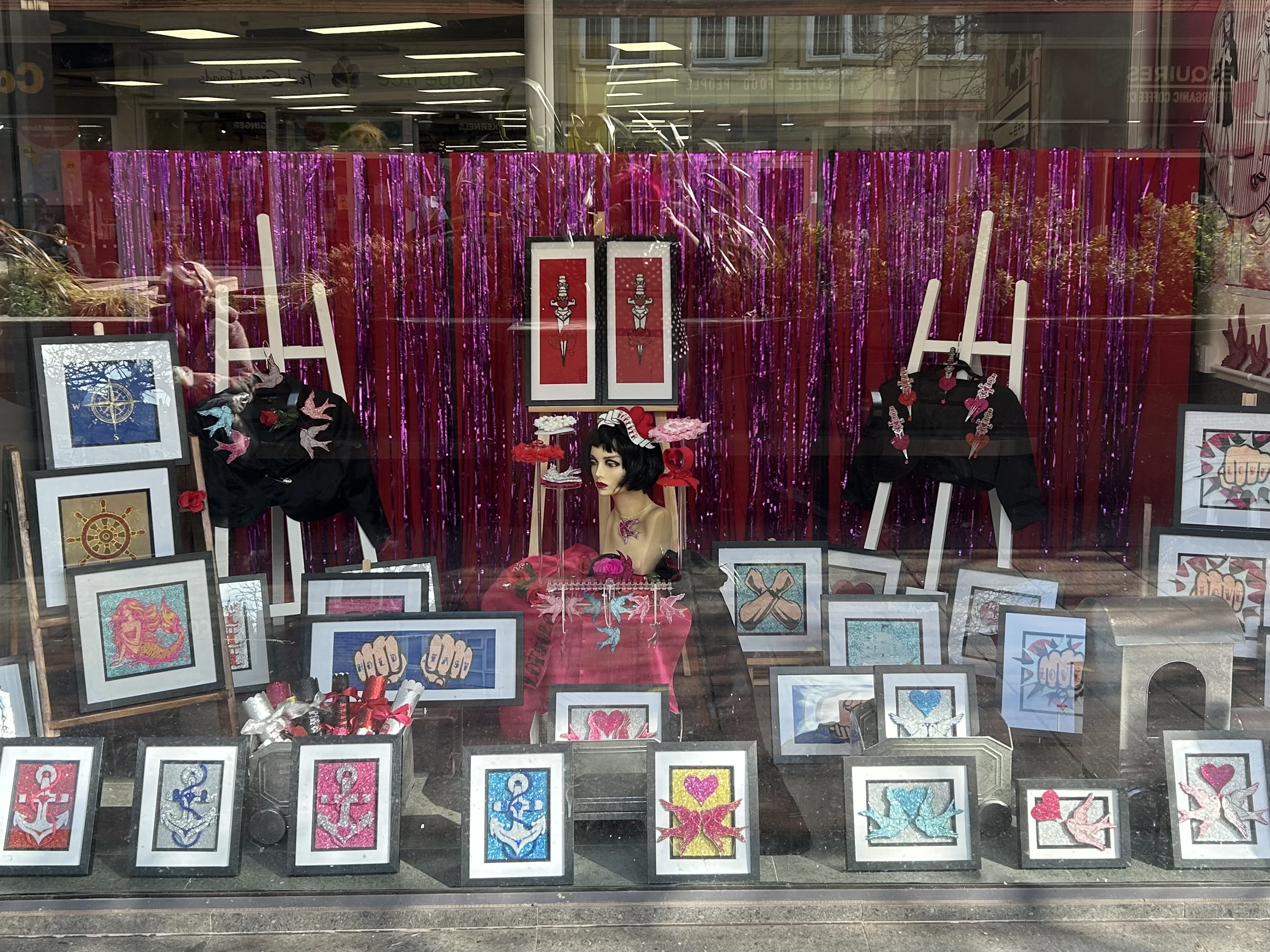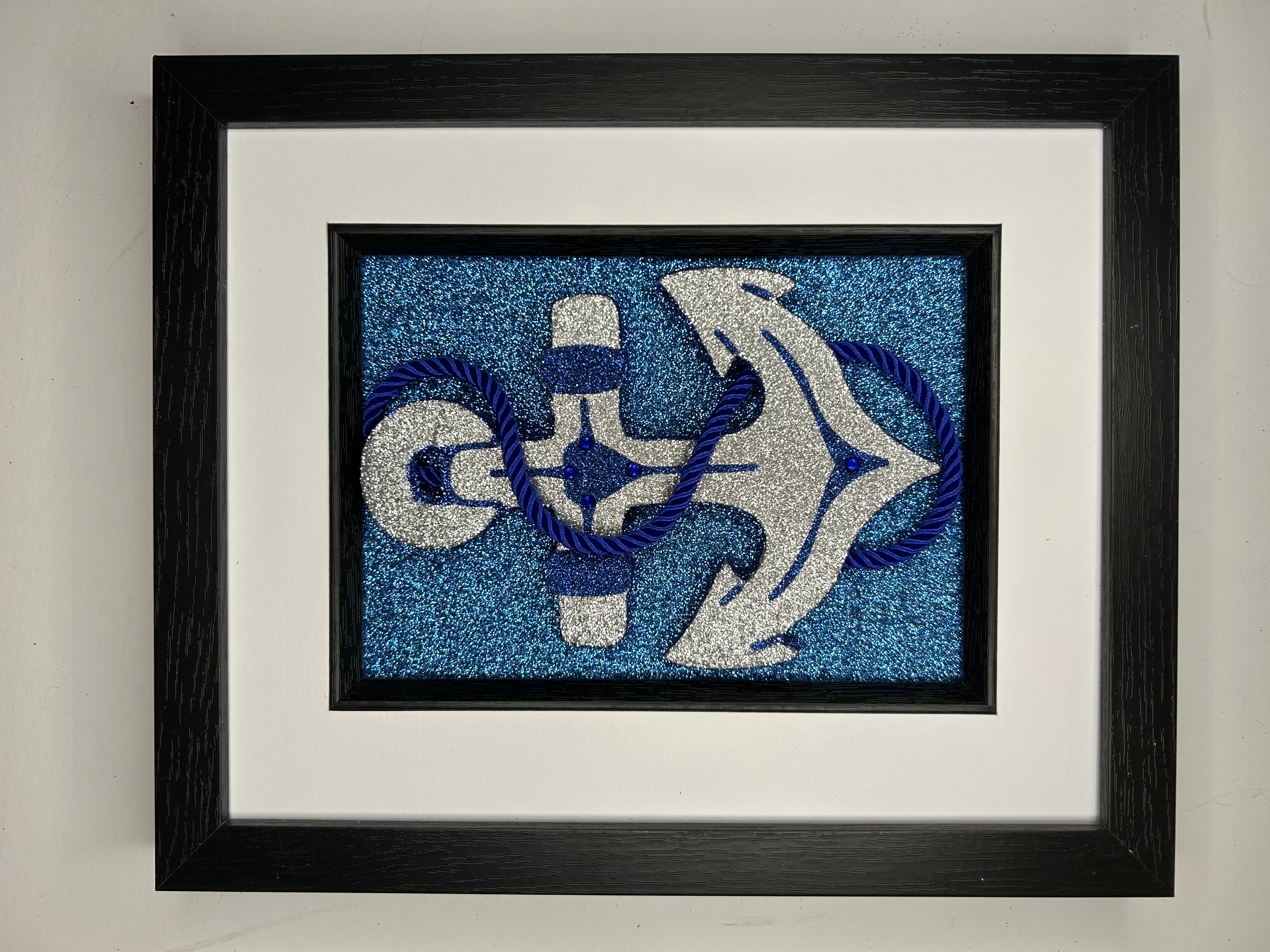 My creations are a celebration of maritime and old school tattoos. I make accessories and art based on these themes with a modern twist using vibrant colours, glitter and gems in three dimensional forms, creating an uplifting and reflective style. They explore tattoos with themes of love, joy and human interaction.