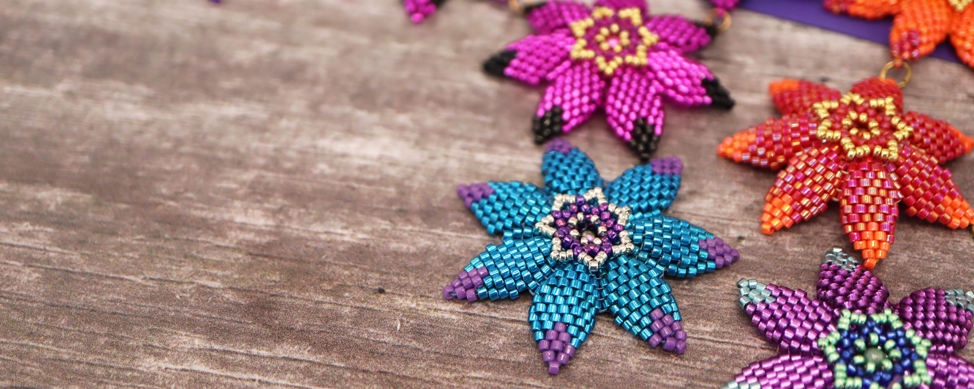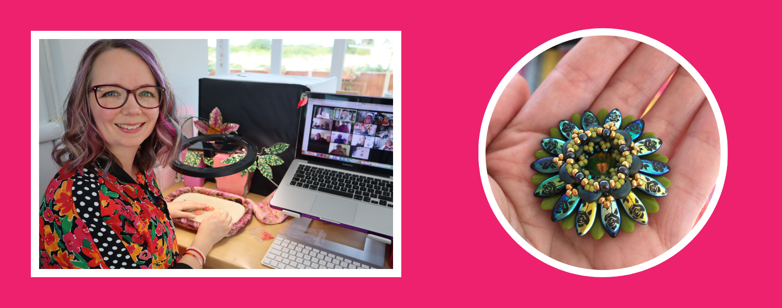 Chloe Menage is a Hampshire-based designer who creates vibrant and whimsical beadwoven designs in a riot of colours. She has a passion for colour and sparkle – and for sharing her love of beading with others!